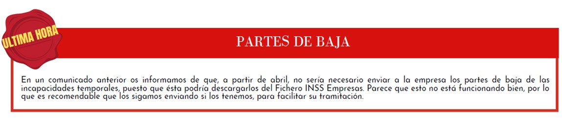 Queremos añadir un par de recomendaciones. Aunque ya no es obligatorio enviar a la empresa los partes de baja por IT, parece que sigue siendo recomendable, aunque no envíes el parte porque en el centro de salud no te lo han dado, avisa a la empresa que inicias un periodo de baja.