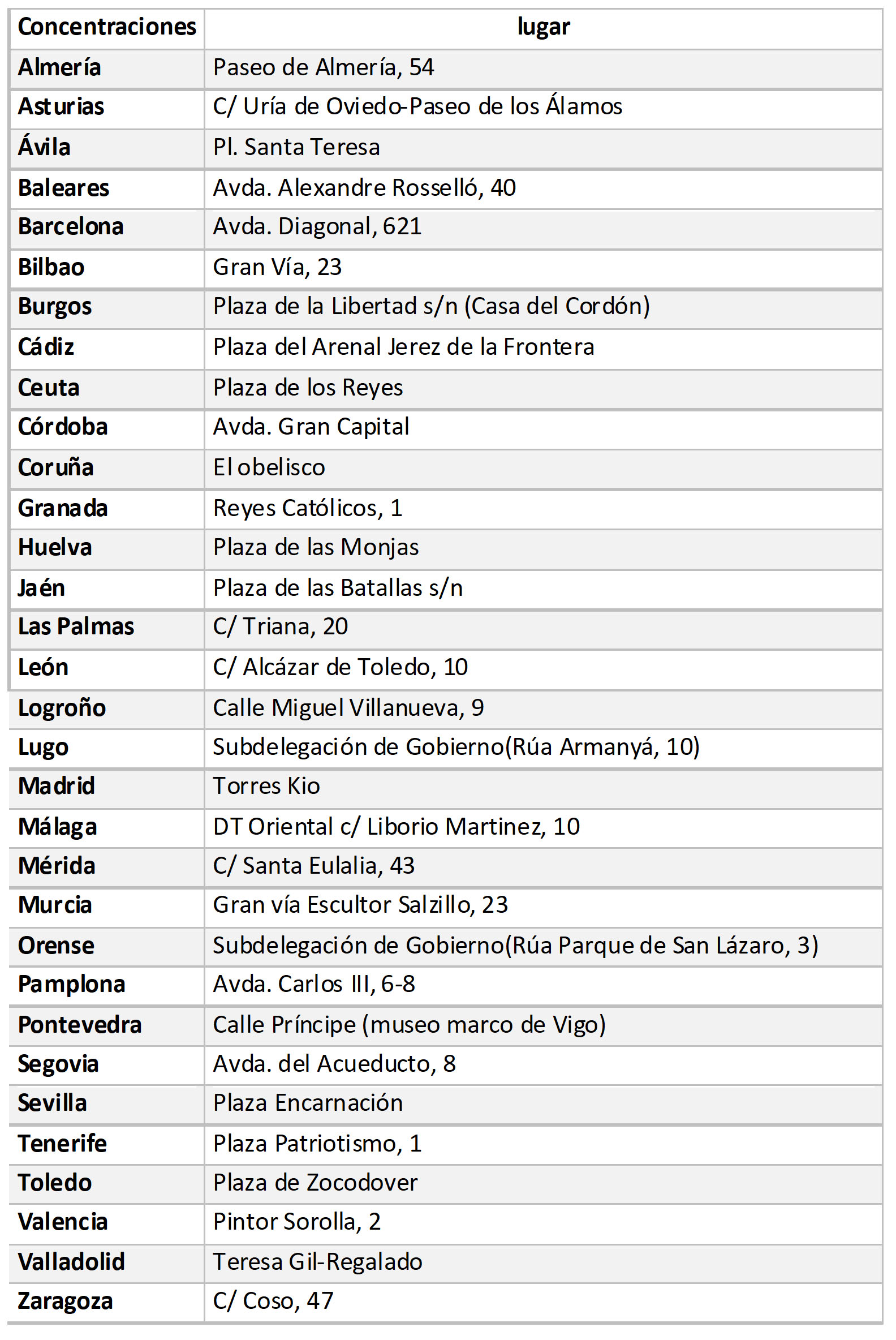 Este día de huelga irá acompañado de concentraciones en distintos puntos del territorio, que se detallan a continuación: