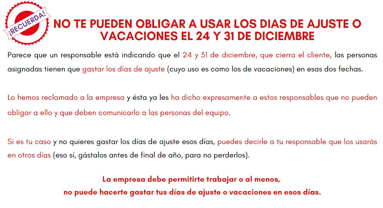 – No pueden obligarte a gastar los días de ajuste ni de vacaciones los días 24 y 31 de diciembre.