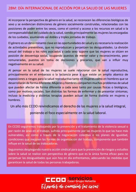 Un año más CCOO reivindicamos el derecho de las mujeres a la salud integral, poniendo el foco especialmente en la salud laboral.