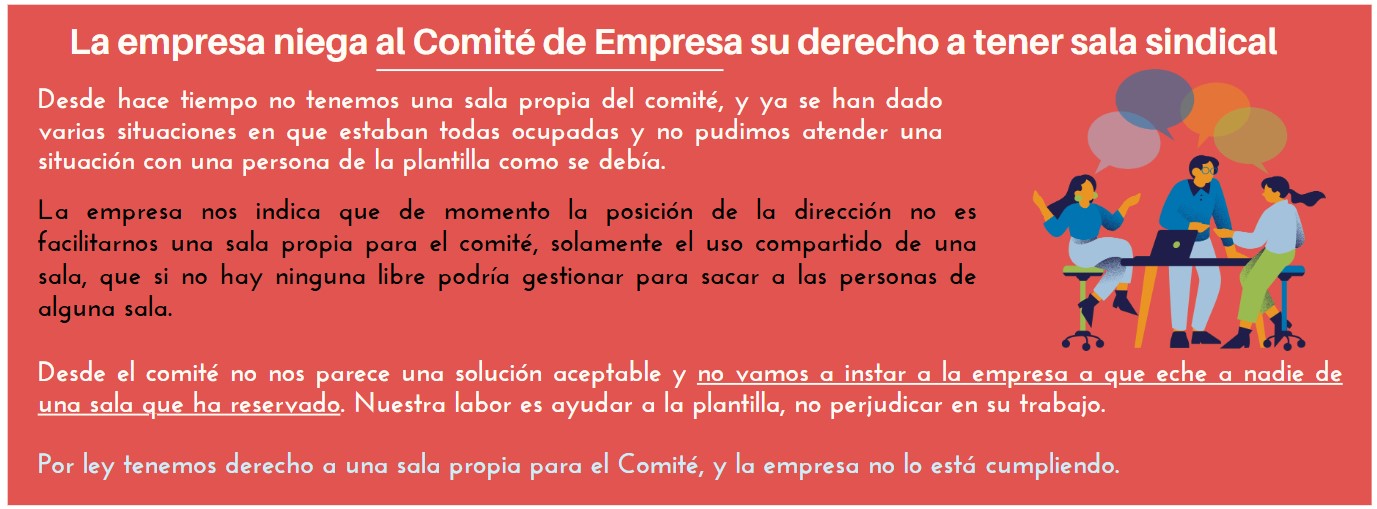 – La empresa niega al Comité de Empresa su derecho a la tener sala sindical.