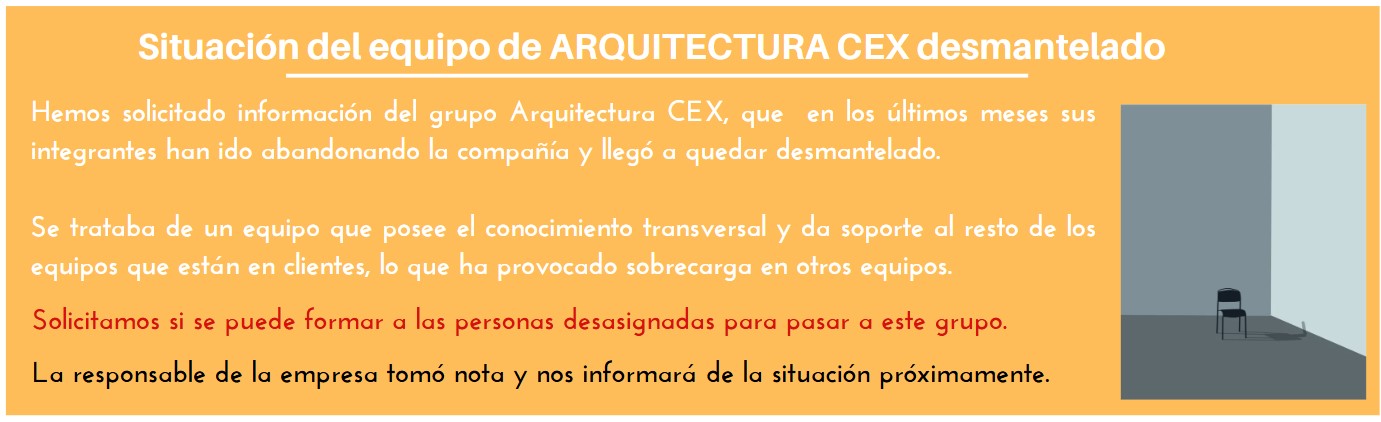 – Situación del equipo Arquitectura CEX tras la salida de la compañía de todo el equipo.