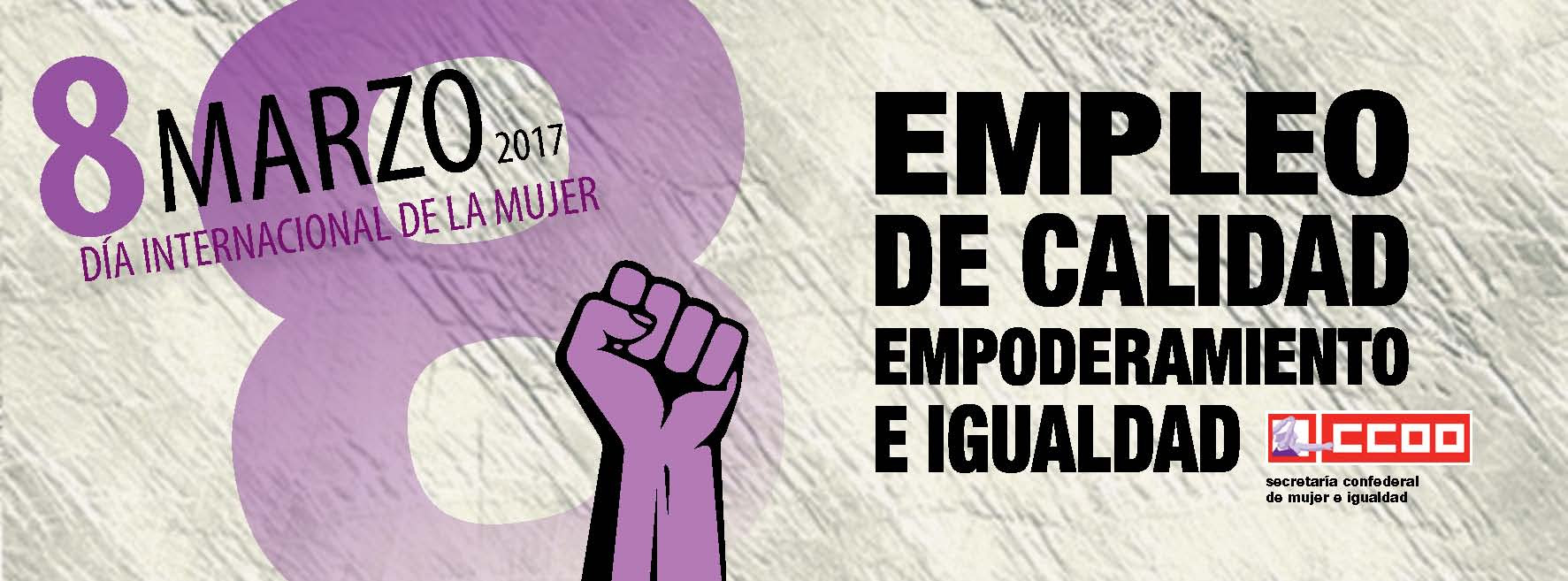 CCOO llama a participar en las manifestaciones y actos que se convoquen el 8 de marzo, para exigir una sociedad más igualitaria, justa y democrática, y mostrar la más contundente repulsa y condena a la insoportable violencia contra las mujeres, que en lo que va de año se ha cobrado la vida de 16 mujeres.