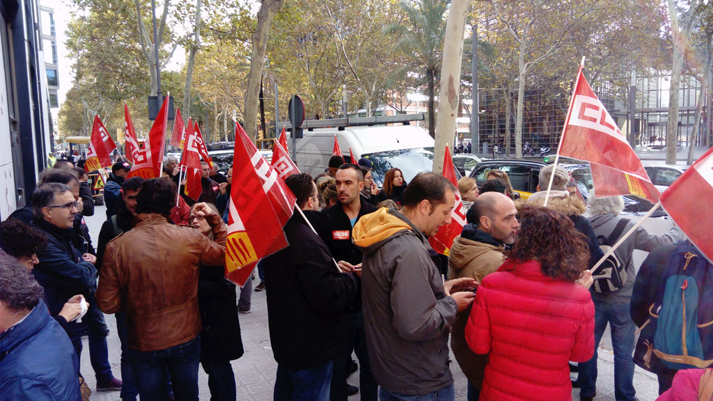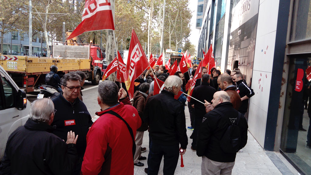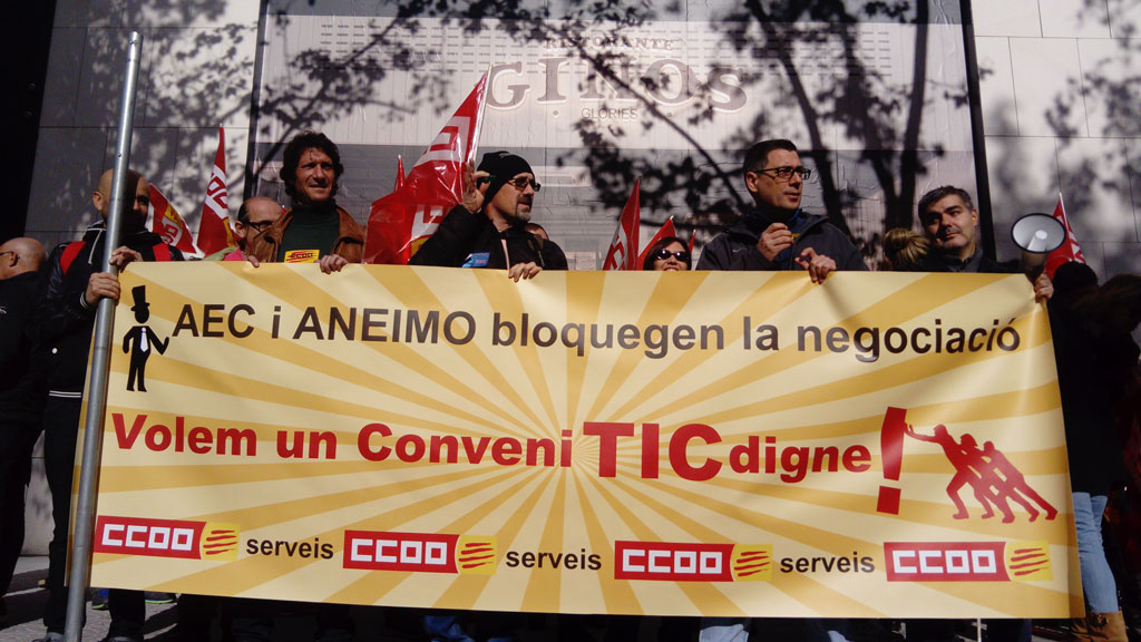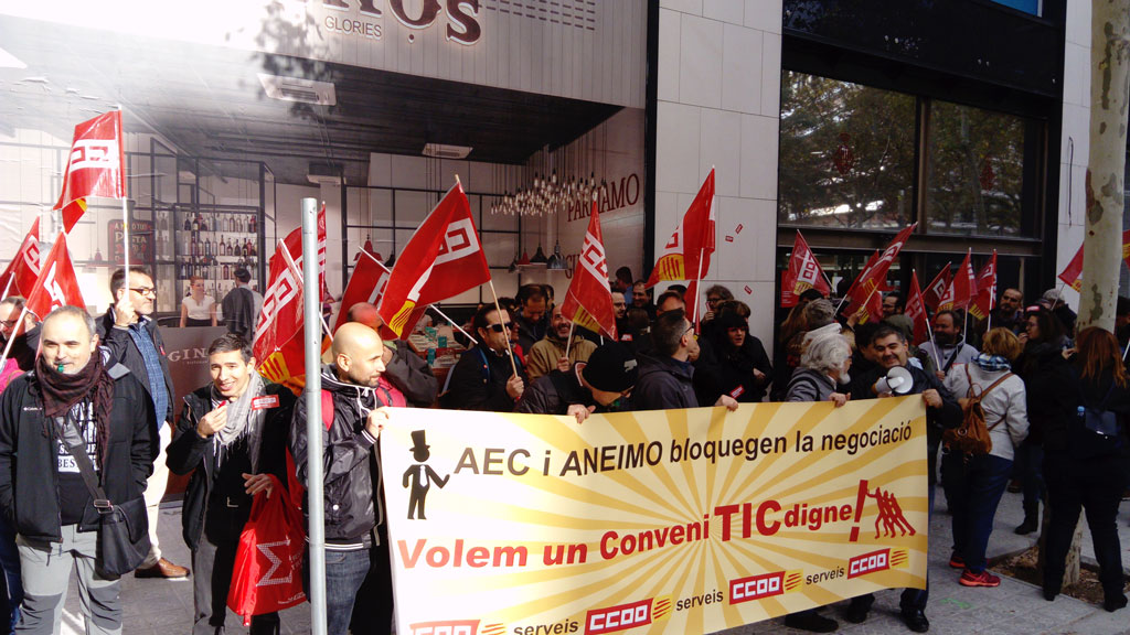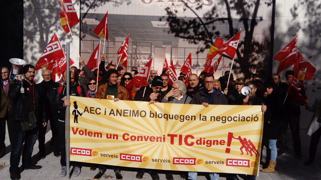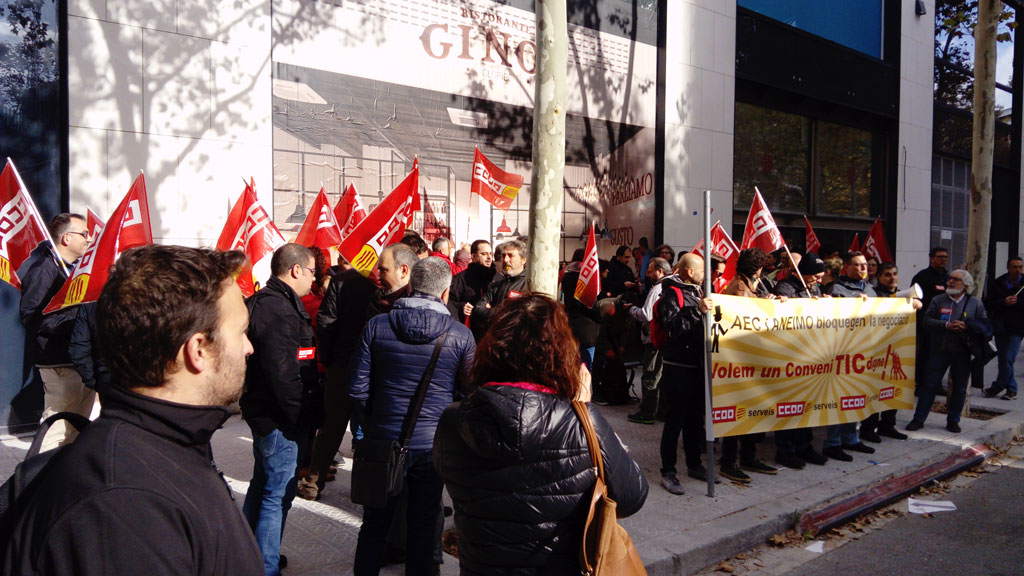 Manifestación de CCOO en Barcelona, delante del IMI (Institut Municipal d’Informàtica en Av. Diagonal 220), contra el bloqueo de la negociación de un #ConvenioTICdigno por parte de las patronales AEC y ANEIMO.