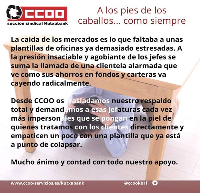 Malos tiempos para trabajar en una oficina Kutxabank. A la presión comercial se suman las inquietudes de la clientela.