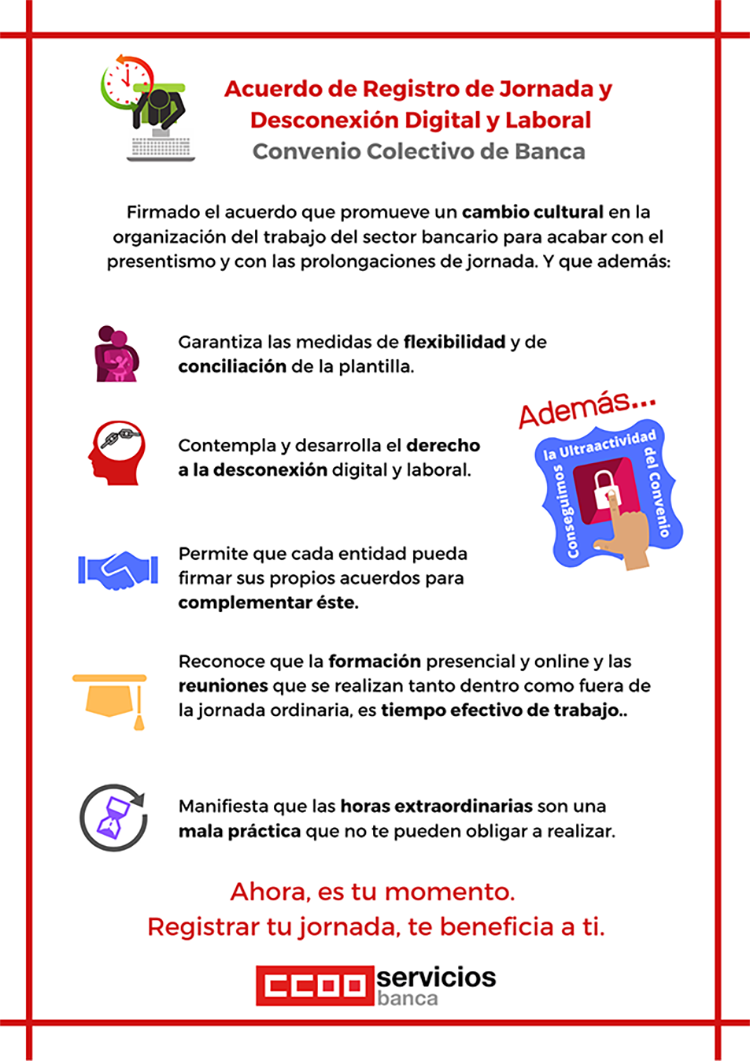 Firmado el acuerdo que promueve un cambio cultural en la organización del trabajo del sector bancario para acabar con el presentismo y con las prolongaciones de jornada.