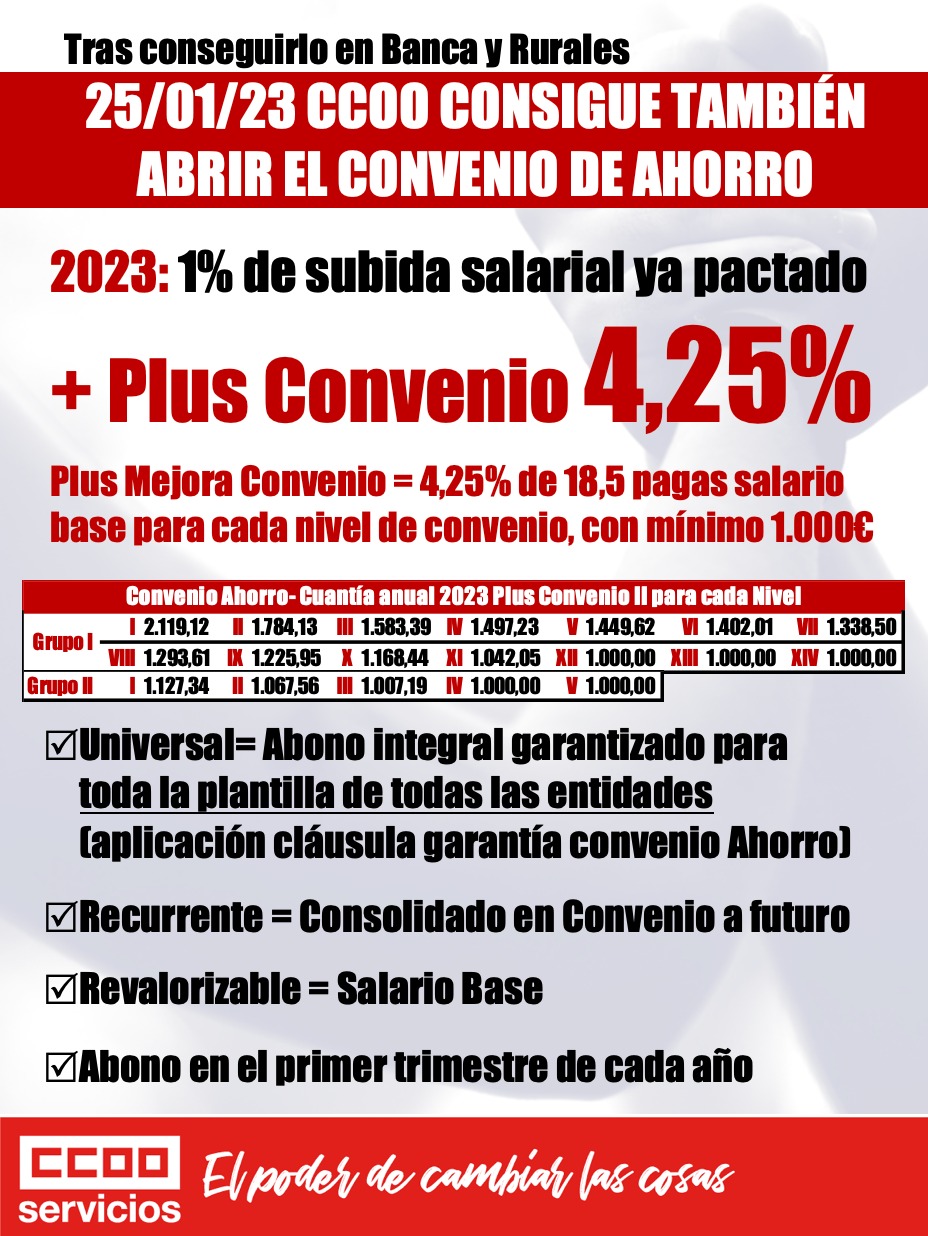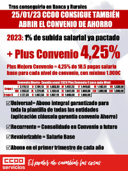 25/01/23 .- CCOO consigue acuerdo en Ahorro