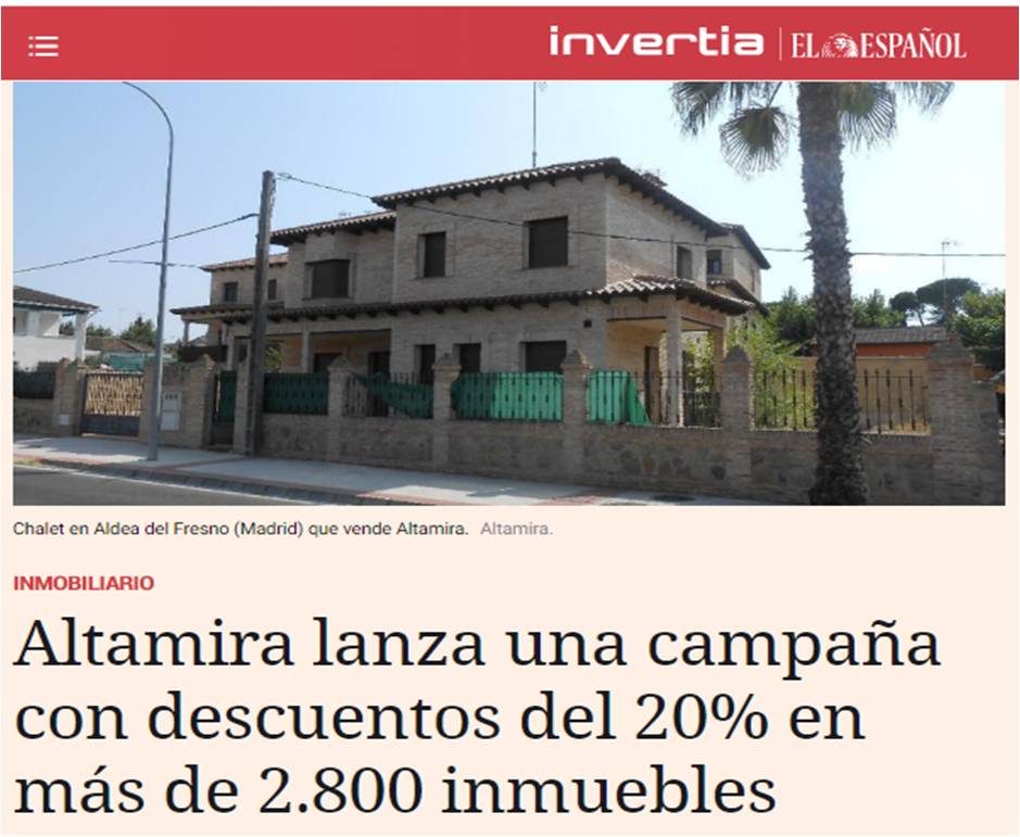 Invertia El Español – Altamira lanza una campaña con descuentos del 20% en más de 2.800 inmuebles