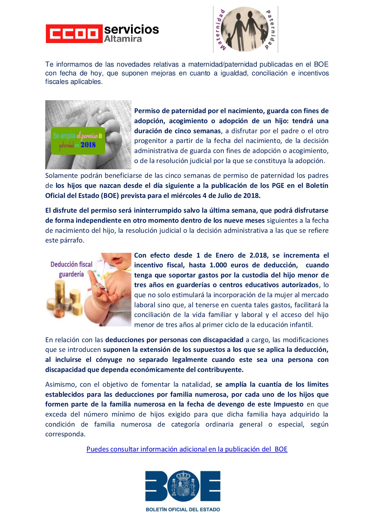 Te informamos de las novedades relativas a maternidad/paternidad publicadas en el BOE con fecha de hoy, que suponen mejoras en cuanto a igualdad, conciliación e incentivos fiscales aplicables.