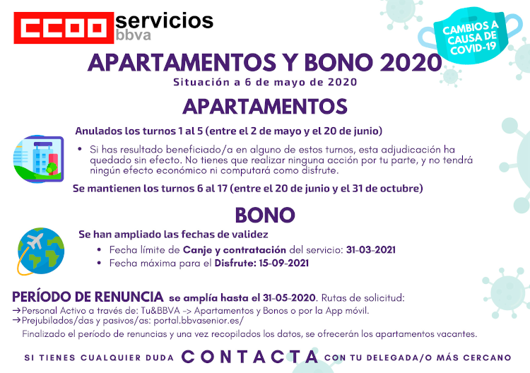 Apartamentos y Bono. Situación a fecha 6 de Mayo 2020 a causa del Covid19.