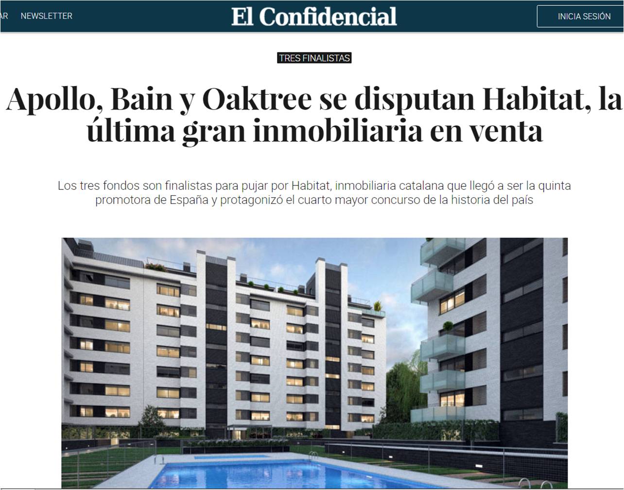 Apollo, Bain y Oaktree se disputan Habitat, la última gran inmobiliaria en venta.