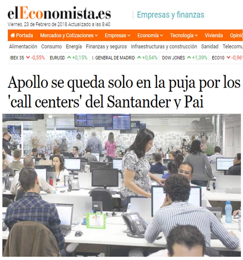 Apollo se queda solo en la puja por los ‘call centers’ del Santander y Pai