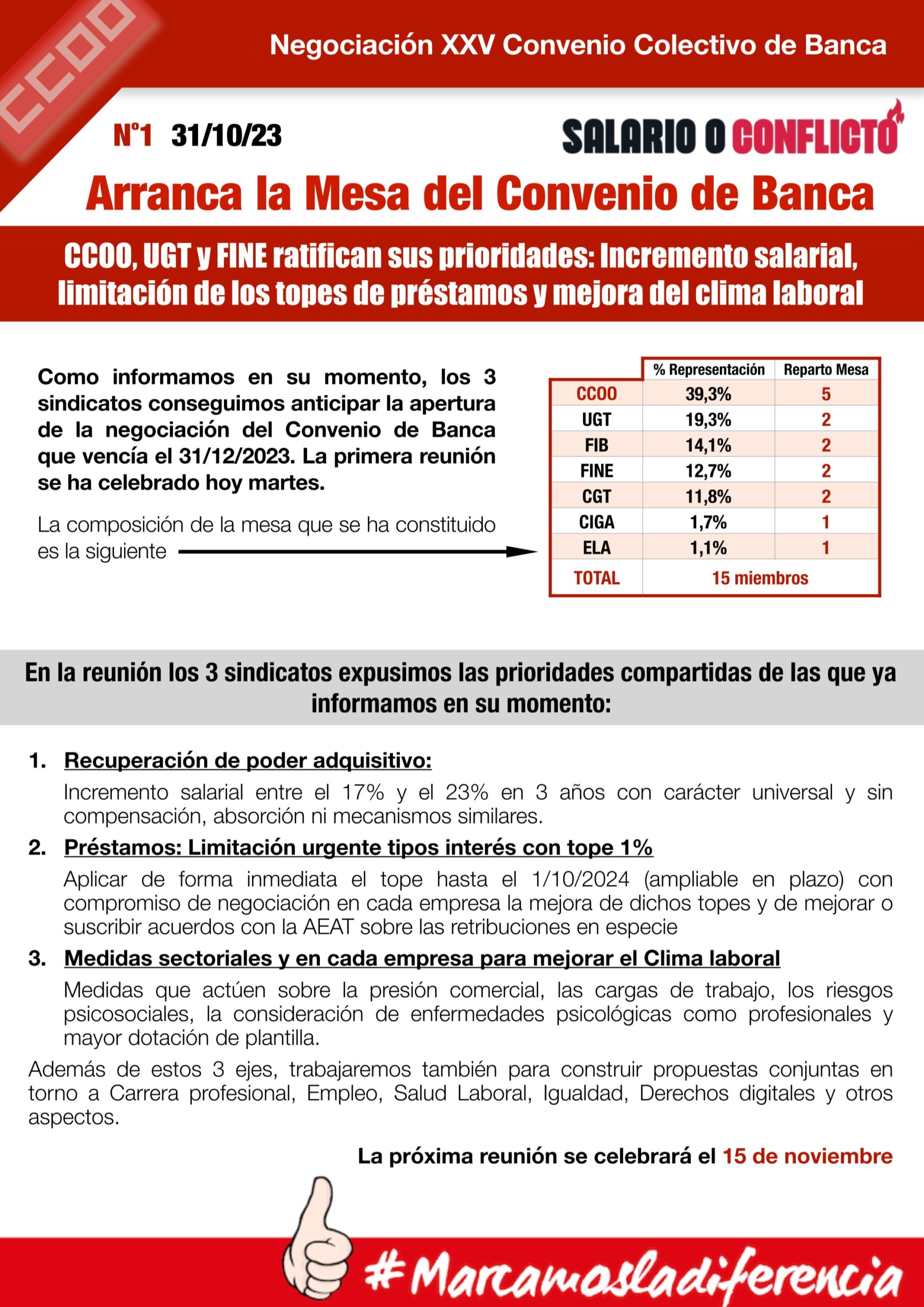 Arranca la Mesa de negociación del Convenio colectivo de Banca