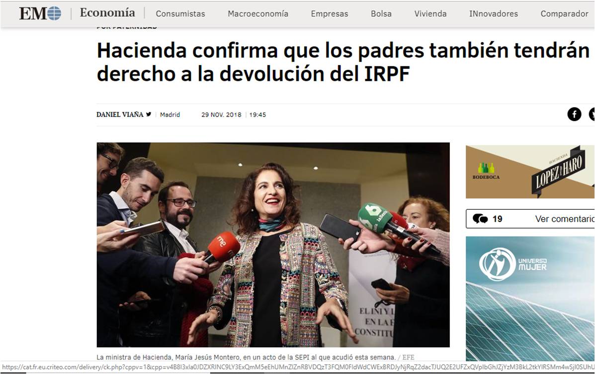 La ministra de Hacienda, María Jesús Montero, ha confirmado este jueves que los padres también tendrán derecho a la devolución de las retenciones del IRPF ejercidas durante su permiso de paternidad.