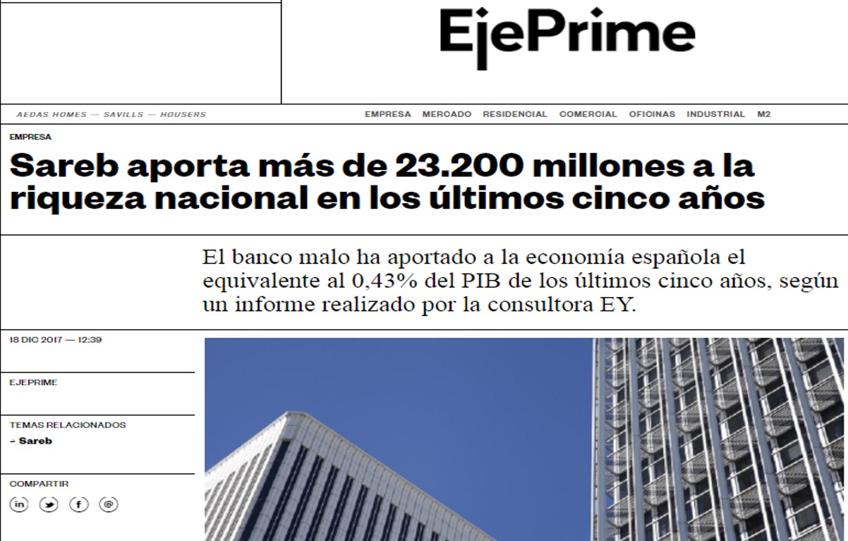 Sareb aporta más de 23.200 millones a la riqueza nacional en los últimos cinco años