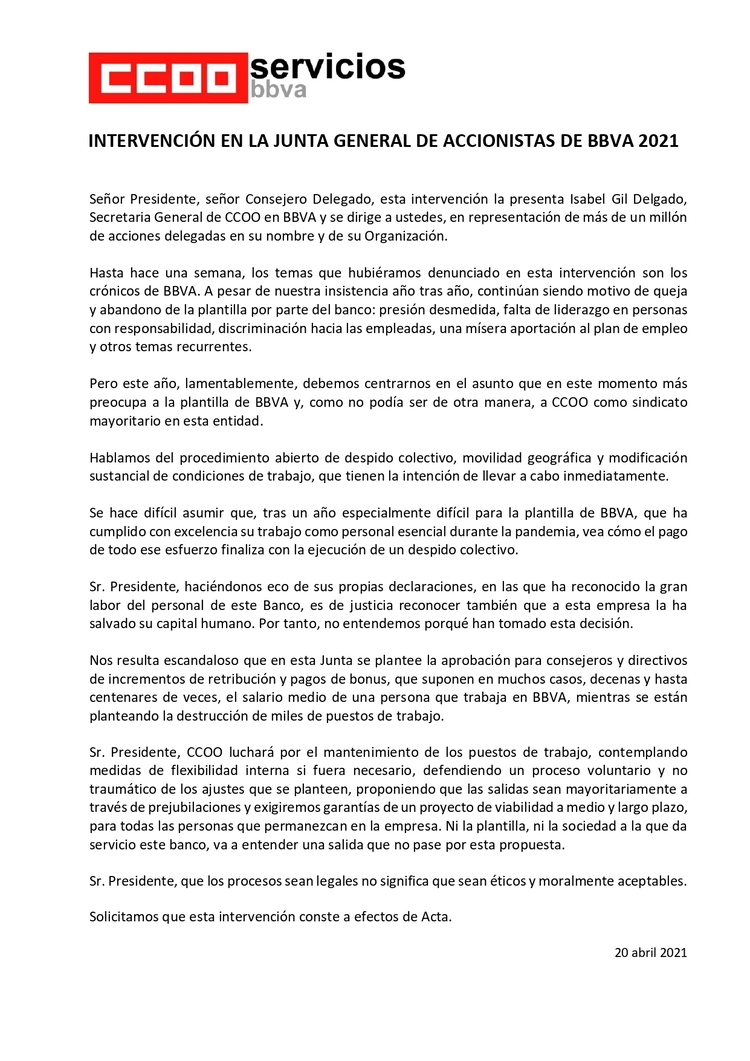 Después de la insustancial y vacía de contenido reunión de ayer día 5, hoy ha empezado el período formal de consultas y BBVA ha entregado el informe en el que basa su pretensión de Despido Colectivo. Una documentación que analizaremos con detalle antes de la próxima reunión prevista para el miércoles 12.
