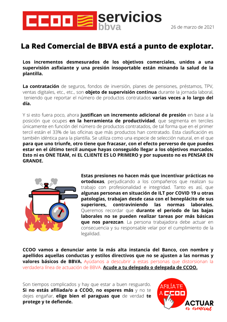 Los incrementos desmesurados de los objetivos comerciales, unidos a una supervisión asfixiante y una presión insoportable están minando la salud de la plantilla.
