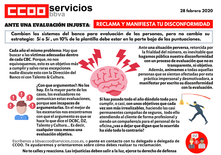 Ante los primeros casos detectados de aislamiento preventivo por posible contagio de COVID 19 en BBVA, CCOO nos hemos dirigido al Banco para exigir que: