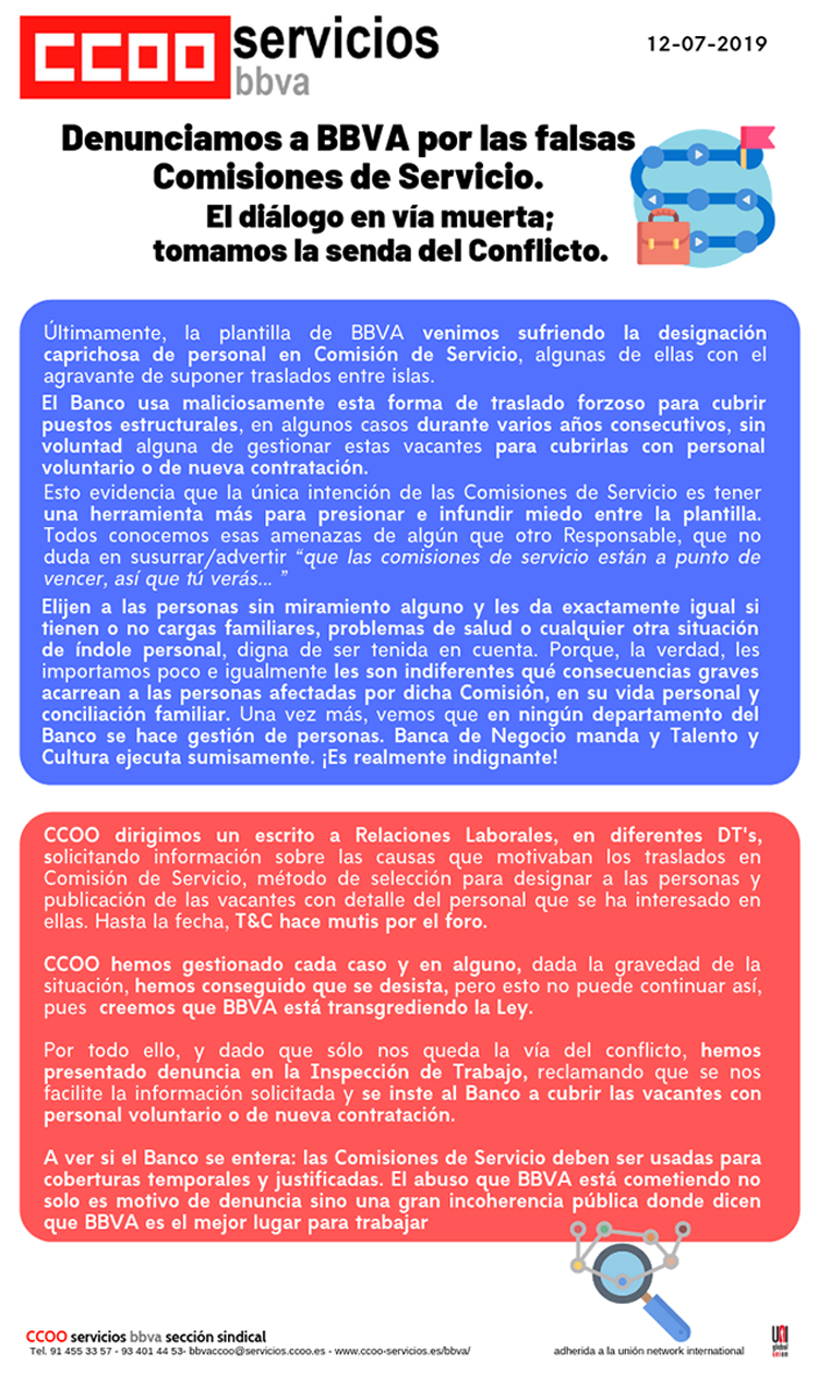 CCOO insta a la Dirección a que dé las explicaciones oportunas aprovechando la inminente presentación de Resultados.