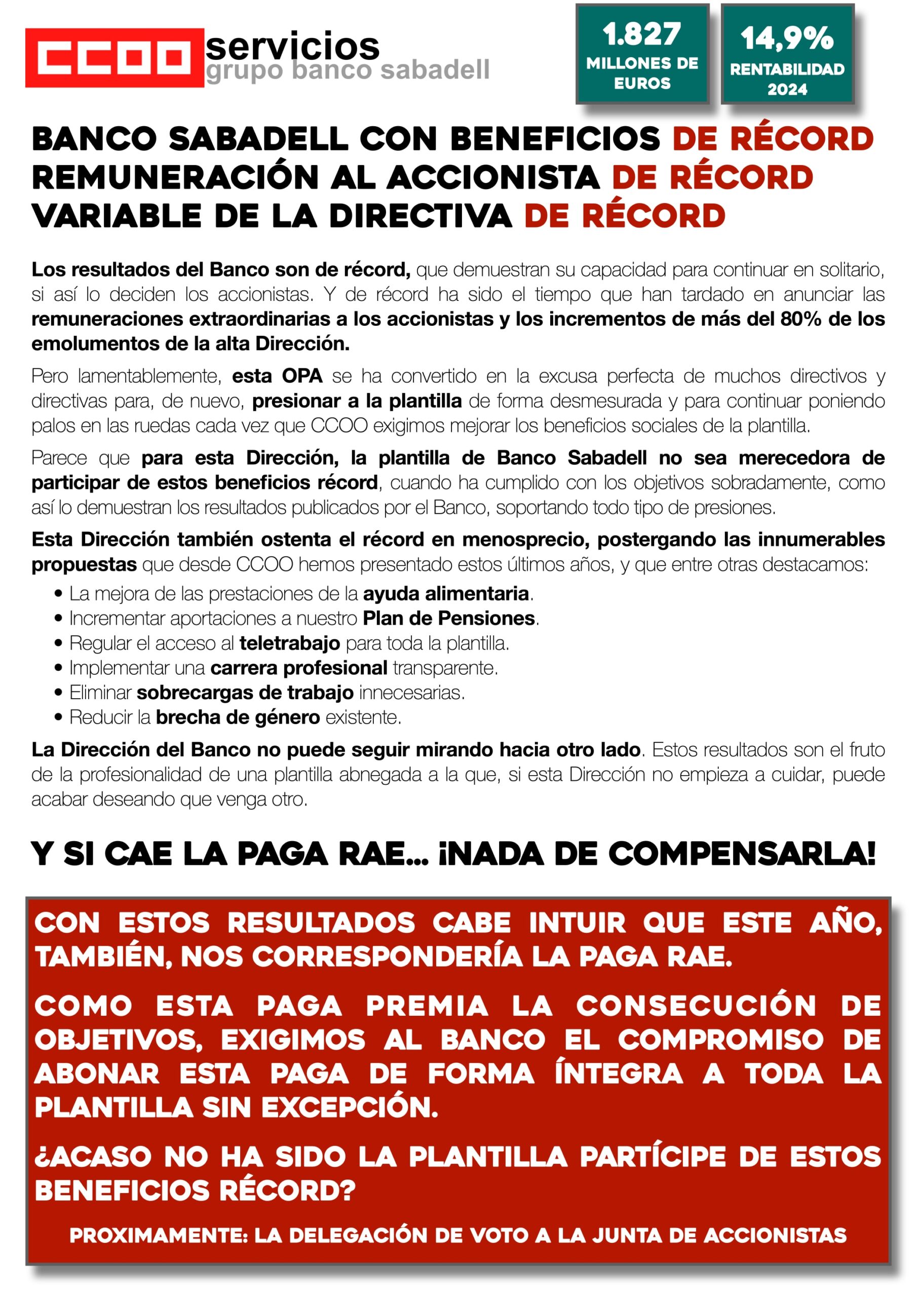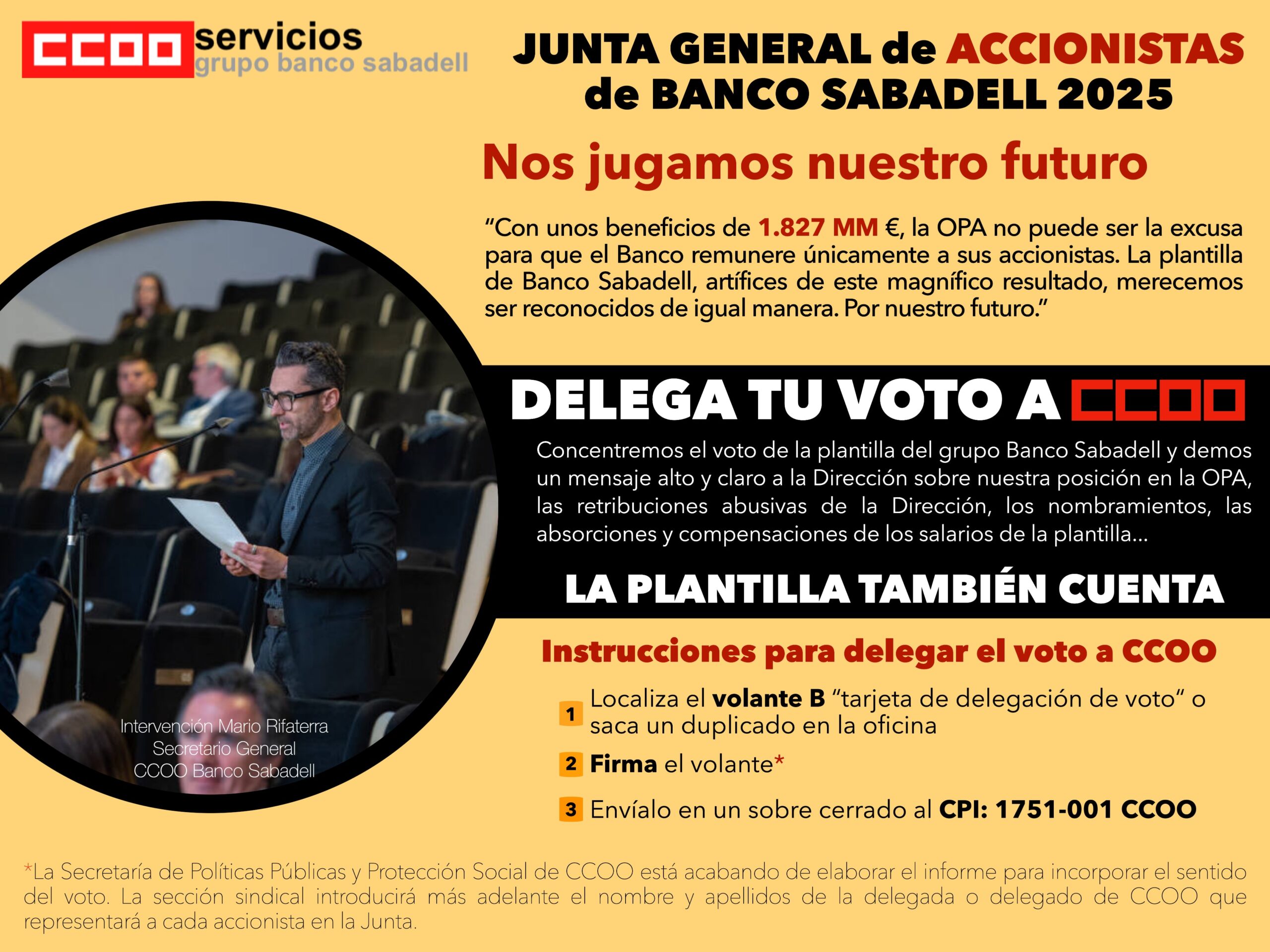 Delega tu voto a CCOO en la Junta de Accionistas de Banco Sabadell