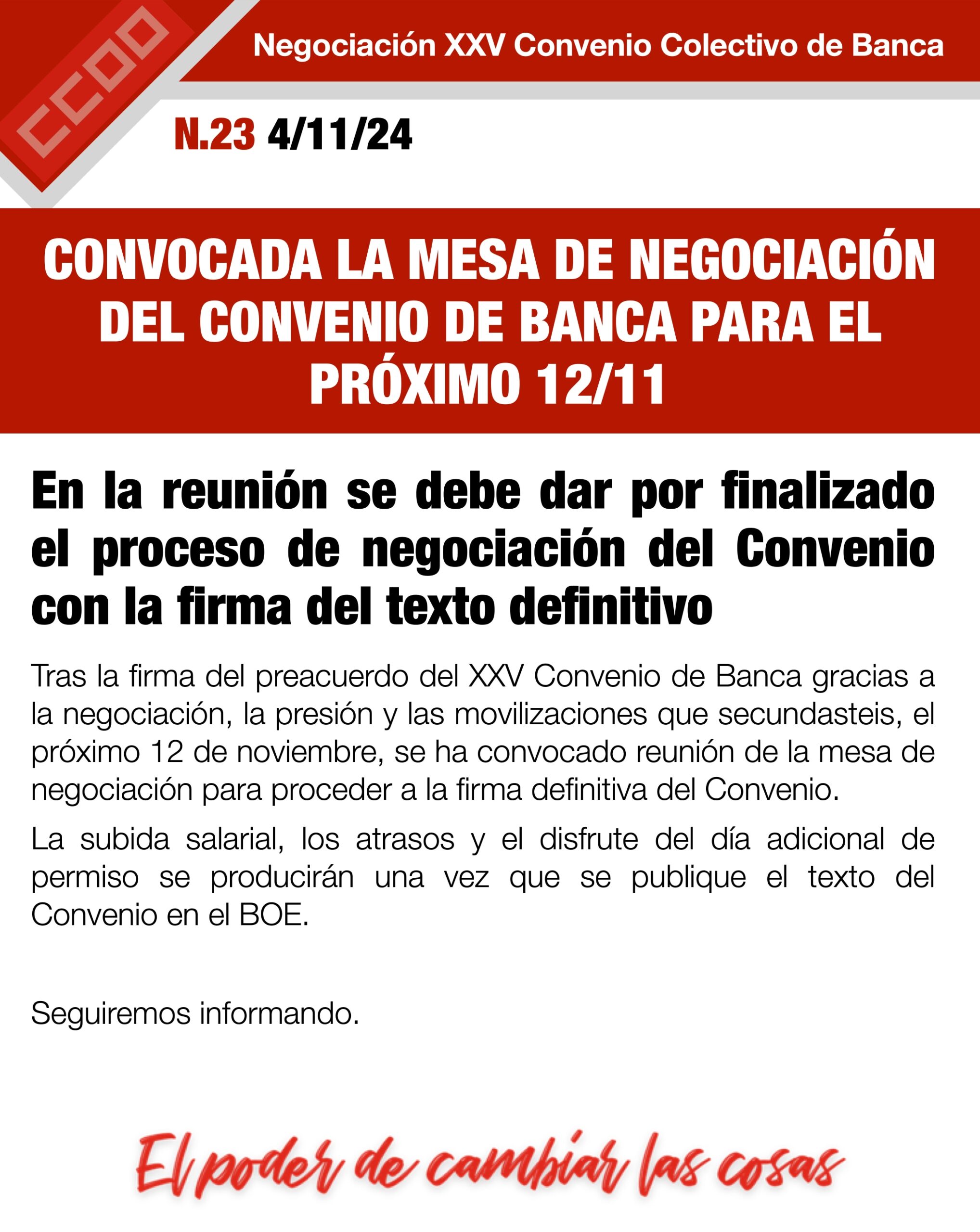 El próximo 12/11 convocada Mesa Convenio para encarar el acuerdo final