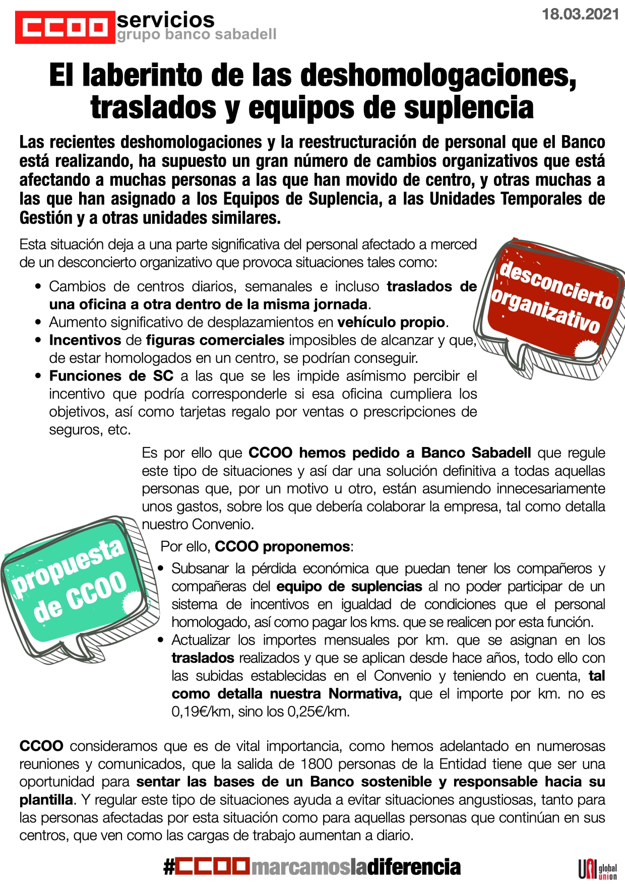 Ante el desconcierto organizativo en Banco Sabadell, propuestas de CCOO