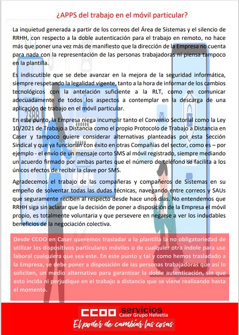La inquietud generada a partir de los correos del Área de Sistemas y el silencio de RRHH, con respecto a la doble autenticación para el trabajo en remoto, no hace más que poner una vez más de manifiesto que la dirección de la Empresa no cuenta para nada con la representación de las personas trabajadoras ni piensa tampoco en la plantilla.