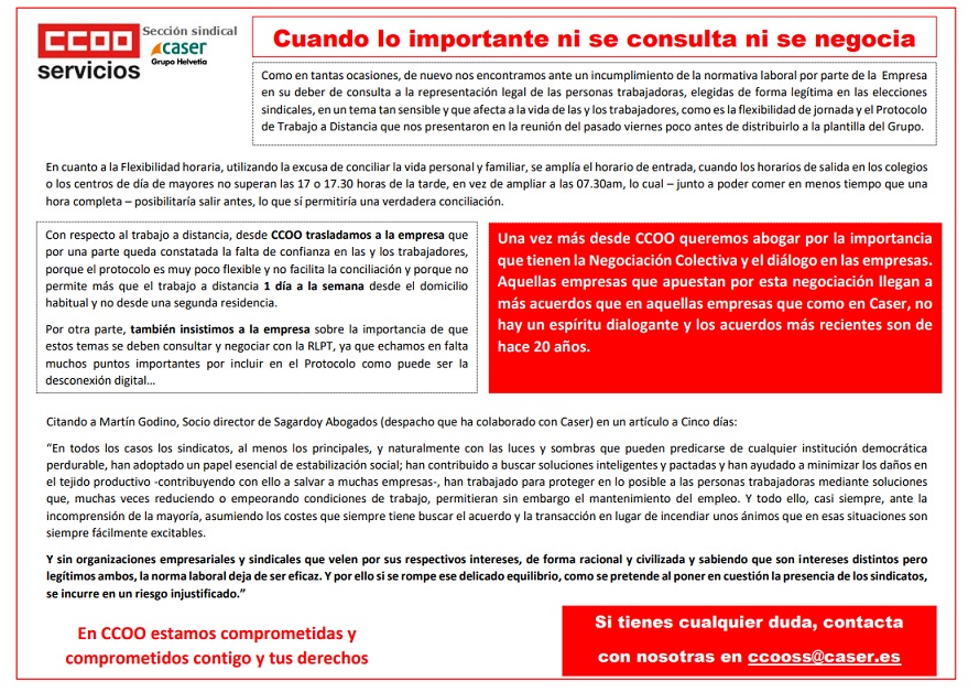 Como en tantas ocasiones, de nuevo nos encontramos ante un incumplimiento de la normativa laboral por parte de la Empresa en su deber de consulta a la representación legal de las personas trabajadoras, elegidas de forma legítima en las elecciones sindicales.