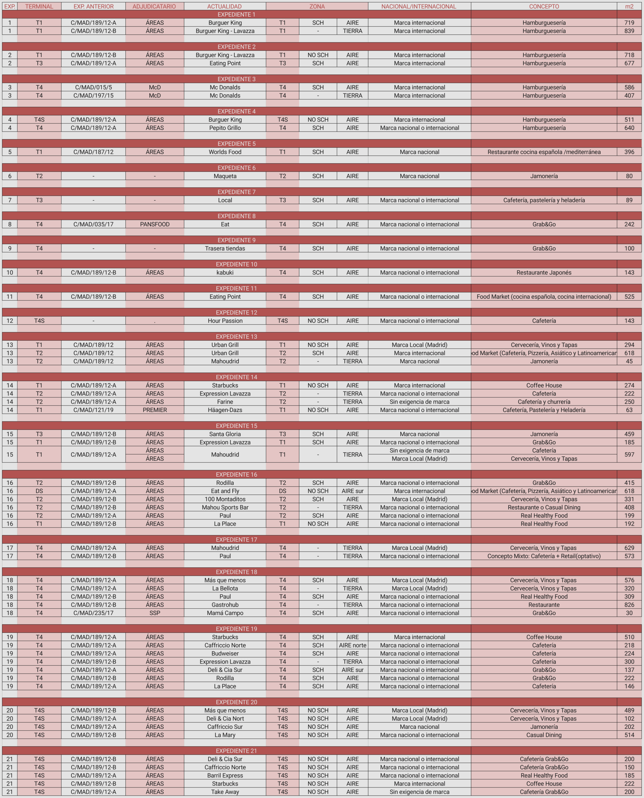 *Airport food outlets SL.(Enrique Tomás ).A continuación, os vamos a detallar las empresas licitadoras por los locales que han pujado a subasta.