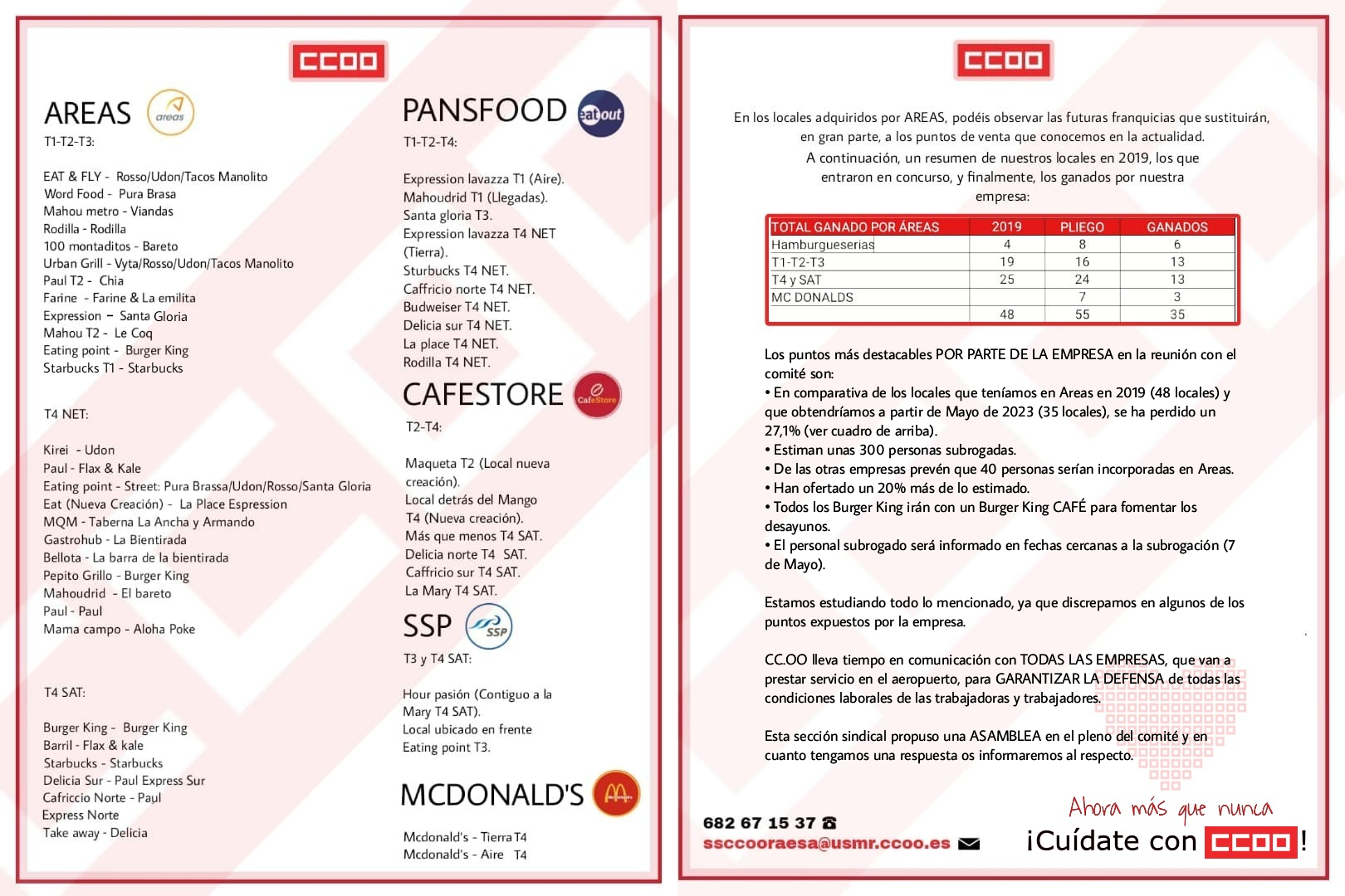 Después de conocer todos los resultados del concurso, podemos comprobar lo que hemos ido anunciando durante el último año; que íbamos a perder locales importantes y que esta subrogación iba a ser crucial para toda la familia que formamos AREAS.