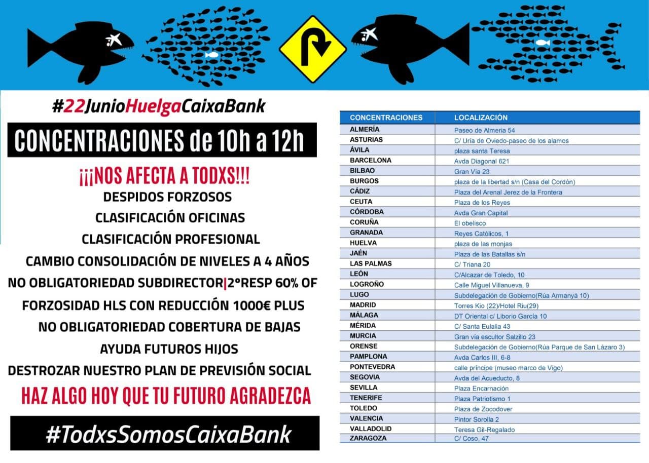 • 22 de junio: huelga y concentraciones en CaixaBank