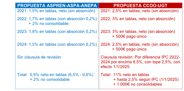 En el acto del SIMA de 17/11, la parte social hemos concretado una contrapropuesta al planteamiento de las patronales del pasado día 11, situando tres elementos que entendemos prioritarios: Que los incrementos en tabla sean acordes con los beneficios empresariales y el entorno inflacionista, que sean netos -sin compensación ni absorción- y que se incluya una clausula de revisión al final del periodo del convenio.