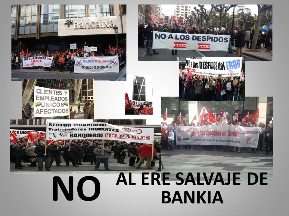 Como continuación a las concentraciones de Delegados llevadas a cabo en contra de la decisión de Bankia de aplicar un Expediente de Regulación de Empleo a 6000 empleados del Grupo Bankia, la representación sindical de los trabajadores os convocamos a las manifestaciones de protesta que se van a llevar a cabo el próximo miercoles 9 en las siguientes ciudades: