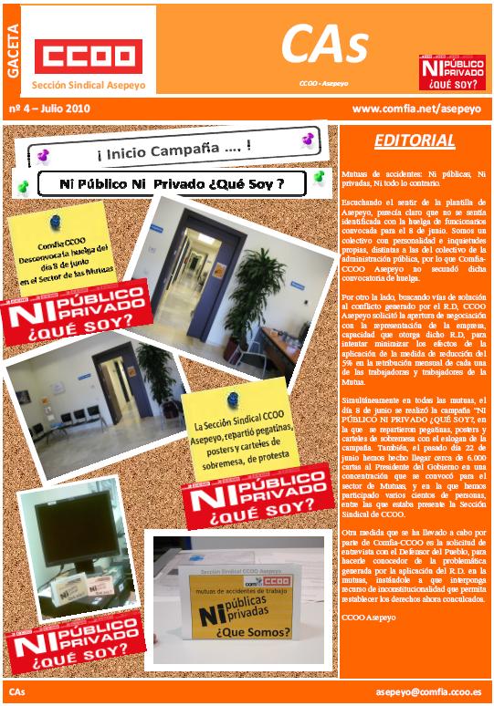 A juicio de CCOO, lo esencial de su intervención gira en torno a las iniciativas aquí comentadas, y que no hacen sino añadir actualidad y vigencia a la convocatoria de huelga general que CCOO y UGT han convocado para el 29 de septiembre. “Un sindicato que quiera estar a la altura de los intereses que representa no puede ni debe permanecer impasible; tiene que responder con la contundencia que exige la gravedad de las medidas aprobadas y de las que, lamentablemente, pueden aprobarse. Nadie va a convencernos de que las ideas y personas que se encuentran el origen de la mayor crisis económica y financiera desde la Gran Depresión, se conviertan ahora en asesores del Gobierno para diseñar la salida de la crisis. Con la huelga general trataremos de parar estas políticas y apuntar otra política para una salida más justa y equilibrada de la crisis”, concluye el portavoz de CCOO, Fernando Lezcano.