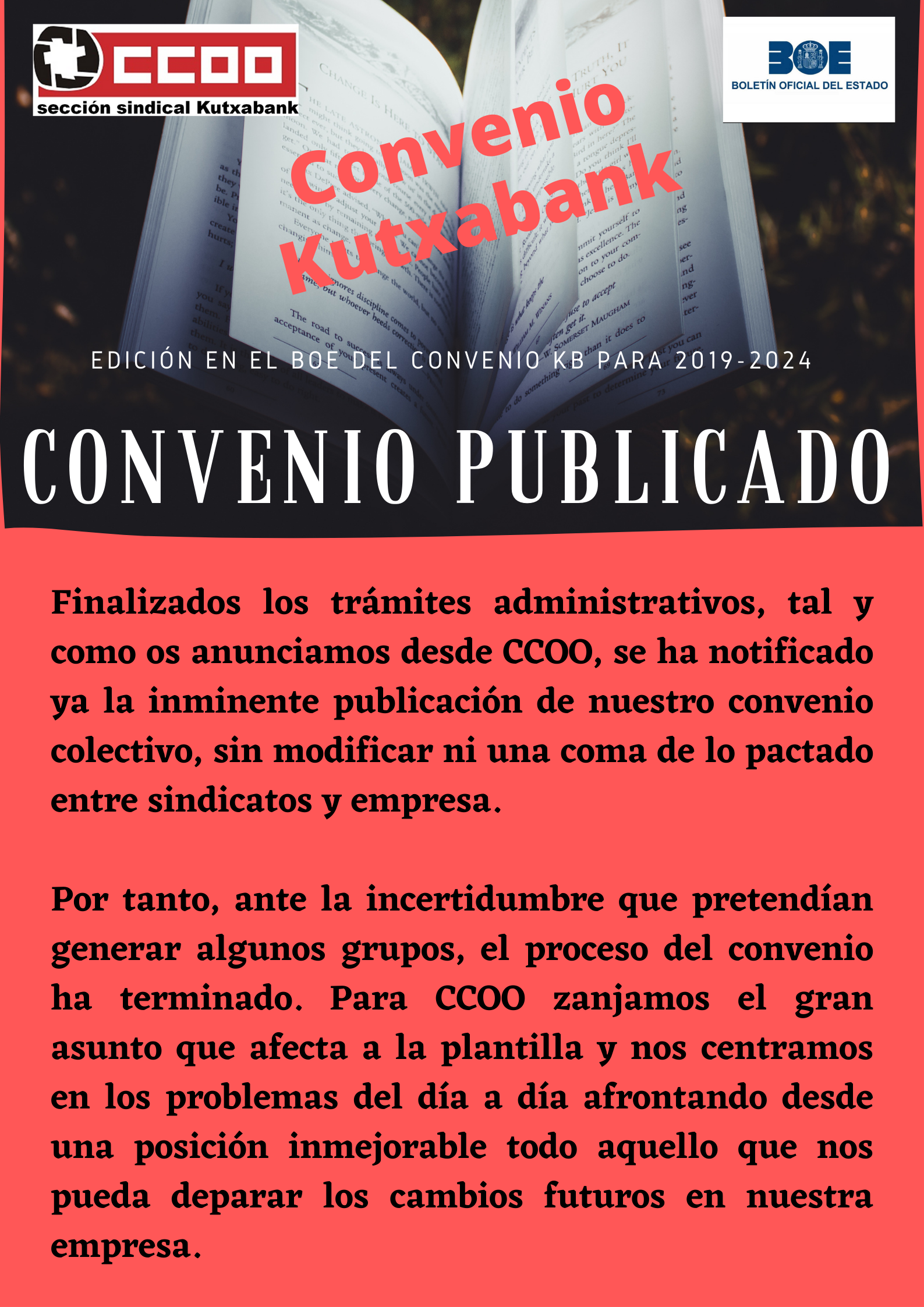 Con su publicación en el BOE termina el proceso de negociación y firma del convenio.