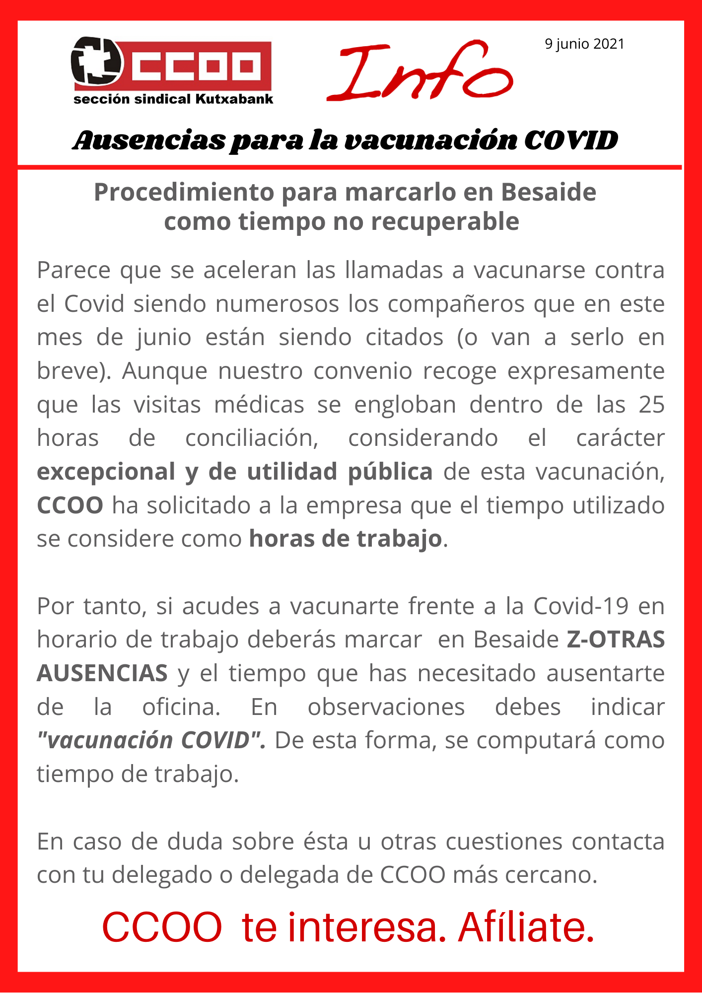 En CCOO estamos muy orgullosos de trabajar duro para alzcanzar acuerdos y preservar y mejorar las condiciones laborales de la plantilla de Kutxabank. Otros grupos sindicales no pueden decir lo mismo, su única labor es hacer muy poco y criticar todo.
