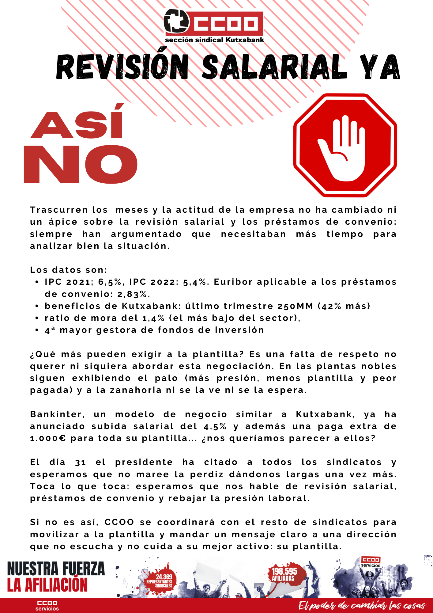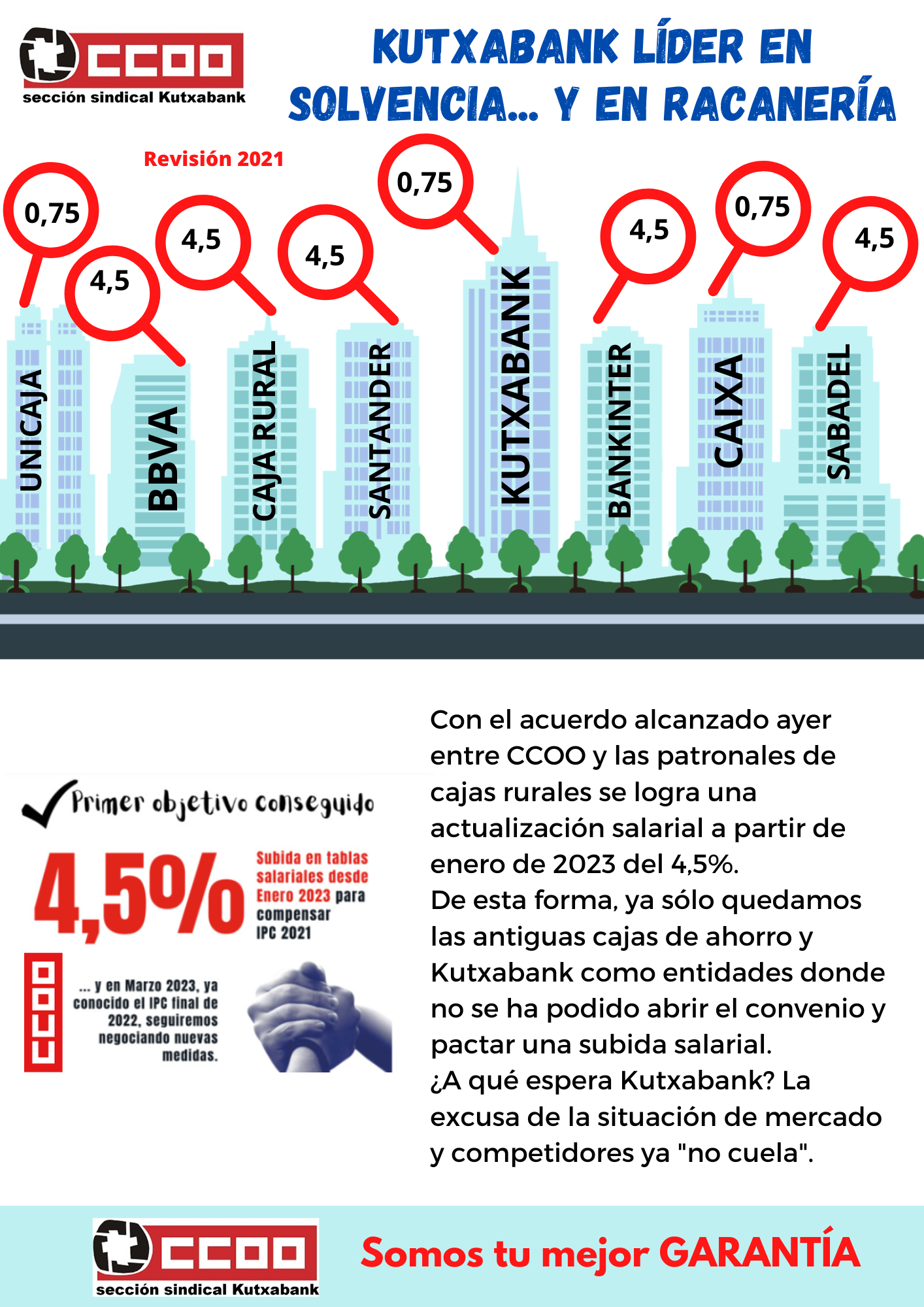 La mayoría de entidades bancarias ya han subido salarios, pero en Kutxabank nada de nada. Y eso con unos resultados excelentes y líderes en solvencia. ¿A qué esperan?