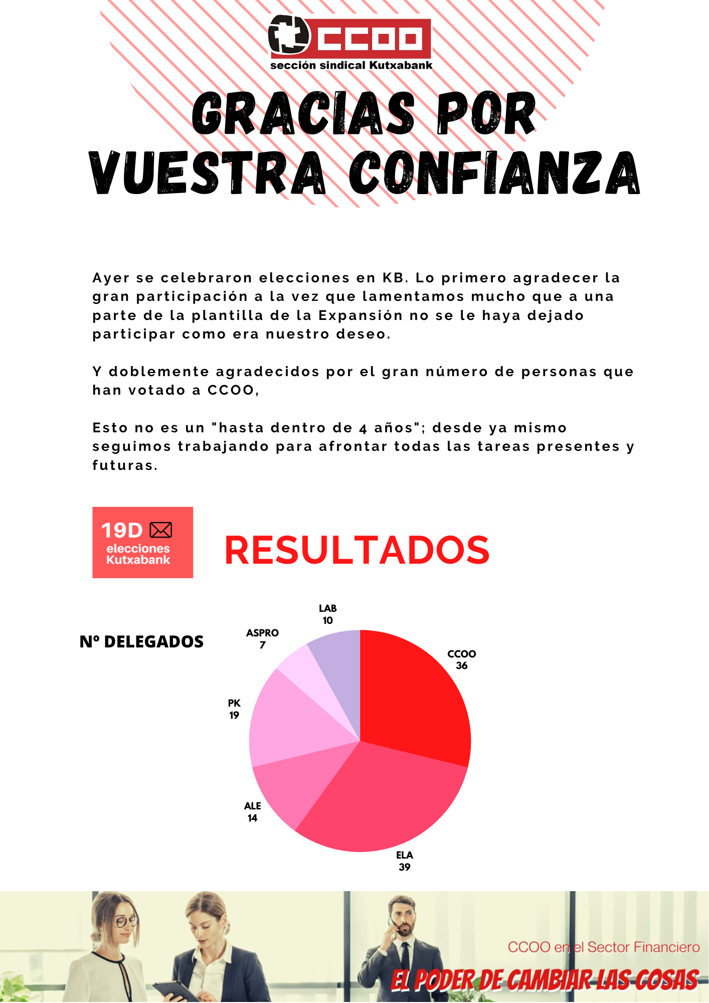 Agradecimiento múltiple a todas las personas que en las elecciones sindicales de KB volvieron a depositar su confianza en CCOO: