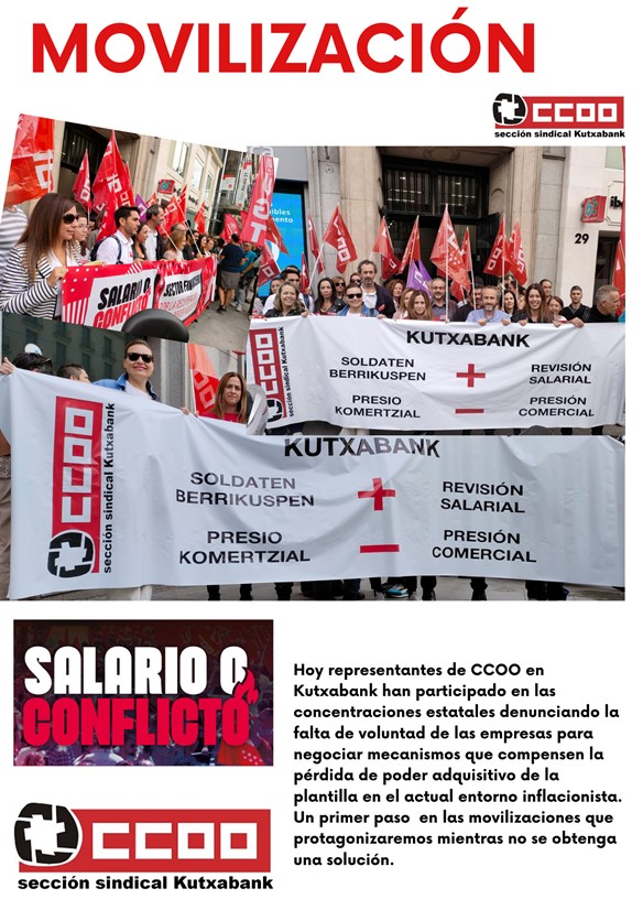 Pasan los meses y la dirección de Kutxabank no quiere darse cuenta de la enorme pérdida de poder adquisitivo que está sufriendo la plantilla. Su actitud nos dirige directamente al conflicto y las movilizaciones.