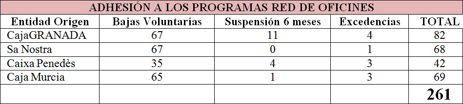 Jueves 12 de julio, en la reunión de la Comisión Central de Seguimiento en Madrid, la Dirección informó a la representación sindical los datos recogidos de las adhesiones de la plantilla a los diferentes programas de adecuación fruto del Acuerdo Laboral firmado el pasado 17 de mayo.