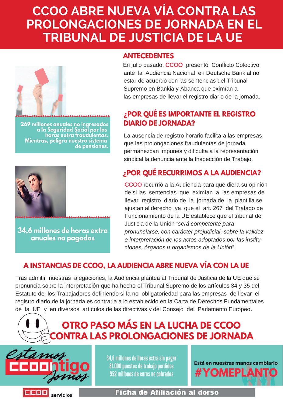 CCOO ABRE NUEVA VÍA CONTRA LAS PROLONGACIONES DE JORNADA