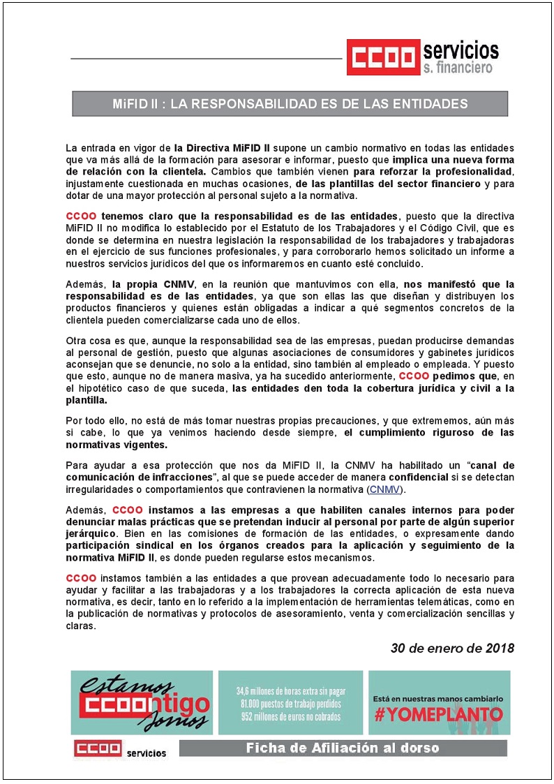 La entrada en vigor de la Directiva MiFID II supone un cambio normativo en todas las entidades que va más allá de la formación para asesorar e informar, puesto que implica una nueva forma de relación con la clientela. Cambios que también vienen para reforzar la profesionalidad, injustamente cuestionada en muchas ocasiones, de las plantillas del sector financiero y para dotar de una mayor protección al personal sujeto a la normativa.
