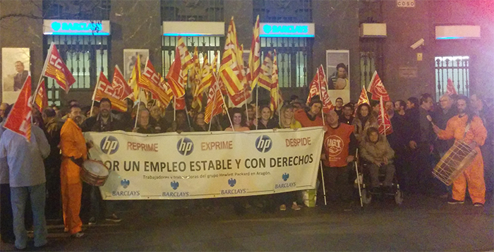 plantilla que vive hoy sin saber que ocurrirá el 1 de Marzo.Ante este suceder de acontecimientos, la plantilla aún de HP, ha decidido abrir un calendario de movilizaciones iniciado el jueves 13 ante la oficina principal de Barclays en Aragón.