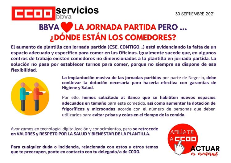 BBVA ama la jornada partida…..desde CCOO reclamamos….¿ dónde están los comedores?