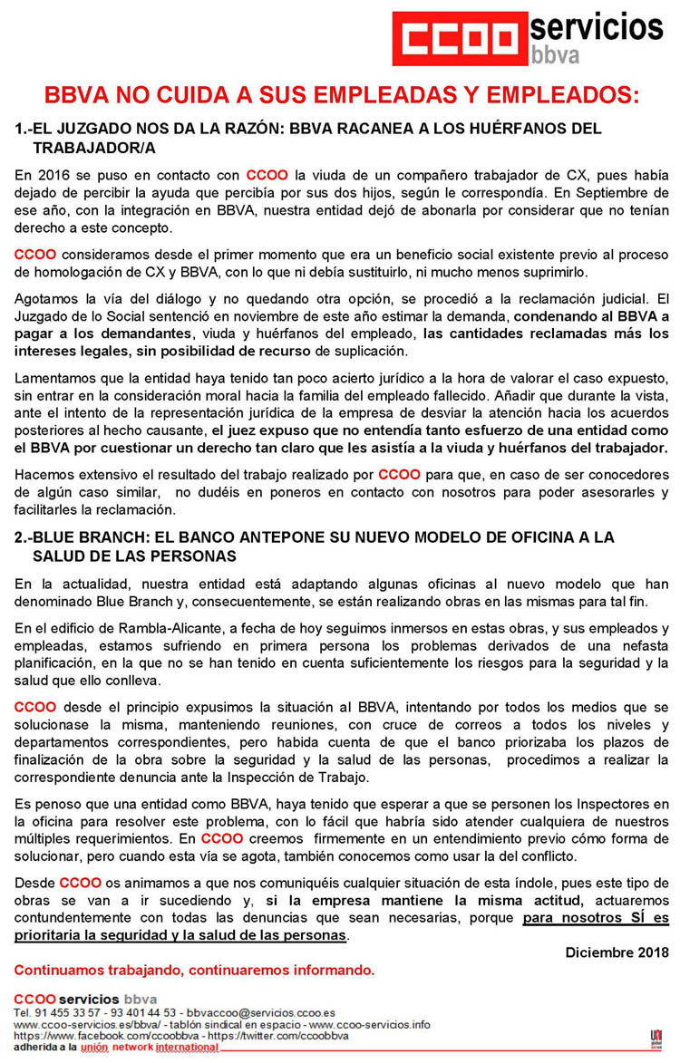 El Juzgado nos da la razón: BBVA racanea a los huérfanos del trabajador/a.