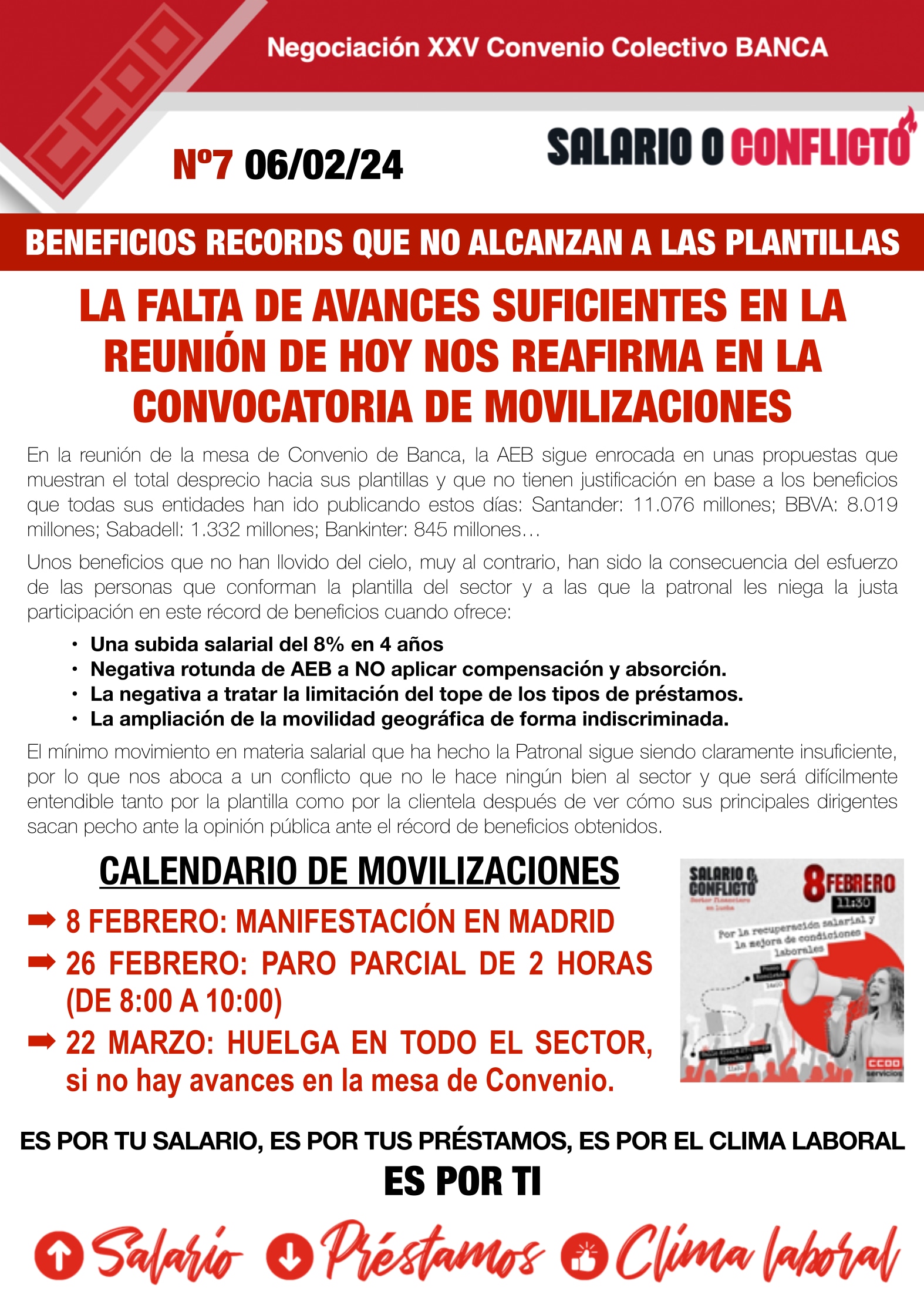 Beneficios récord que no llegan a las plantillas: ¡Hay que salir a la calle!