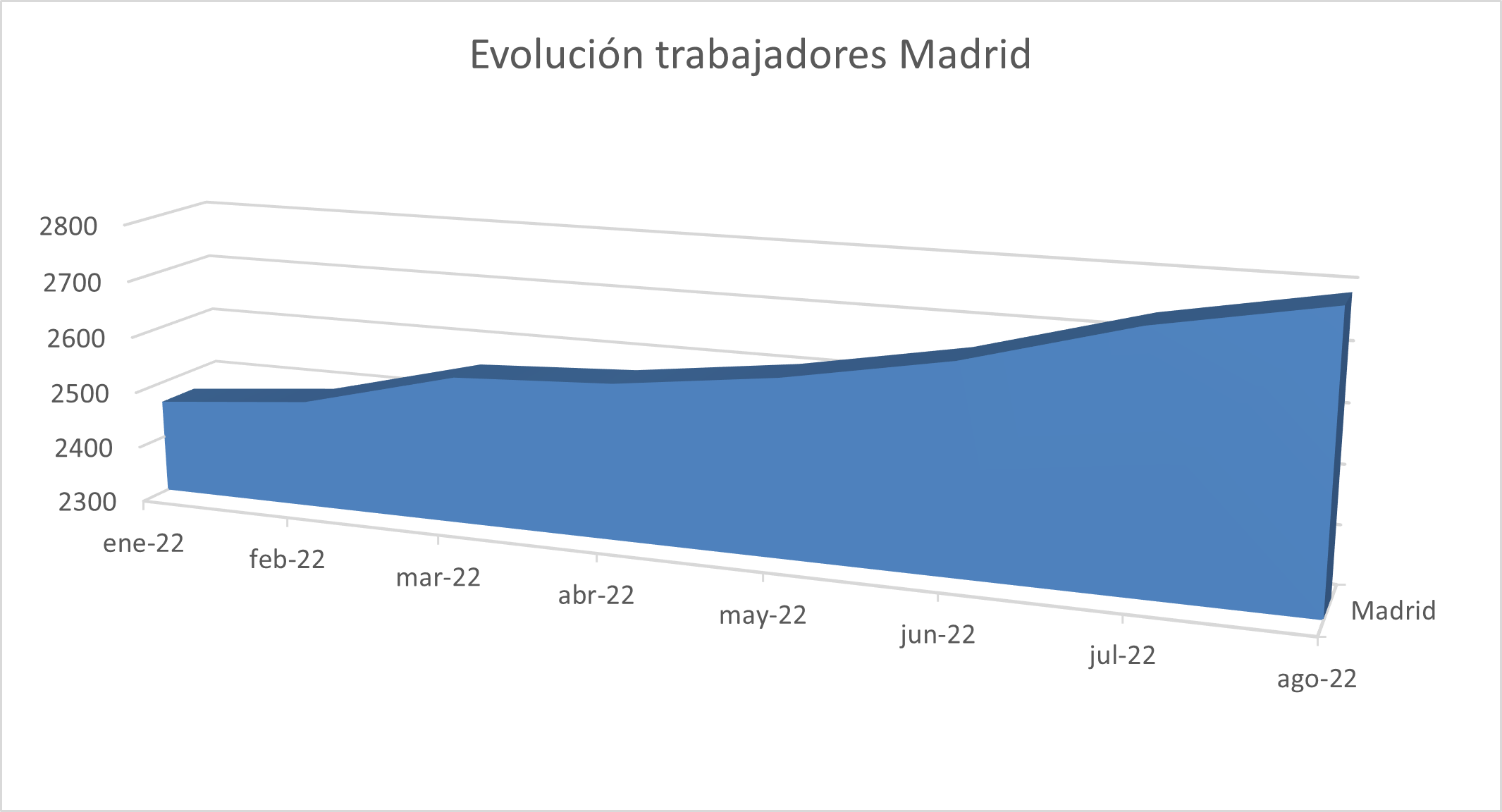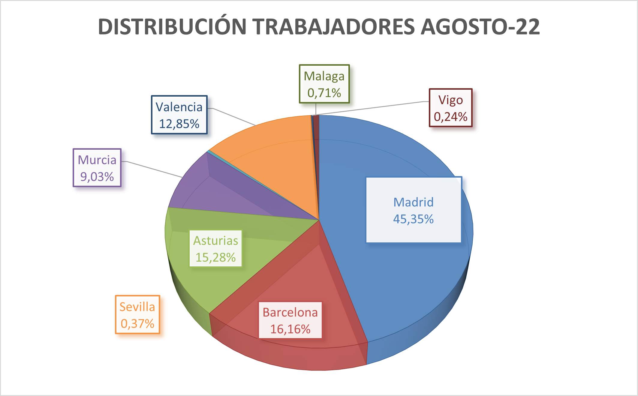 En estos boletines actualizaremos información de interés sobre la evolución de la plantilla en Madrid a partir de los datos de los que disponemos. Este mes podéis ver una serie de evoluciones del número de trabajadores en nuestro centro así como la distribución de la plantilla de la empresa a nivel nacional.