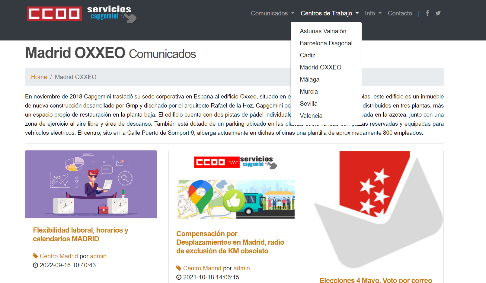 Recordar que en la web de CCOO-Capgemini, además de toda la información que os enviamos por email, así como preguntas frecuentes, acuerdos y legislación, tenéis un apartado con la información de nuestro centro de trabajo