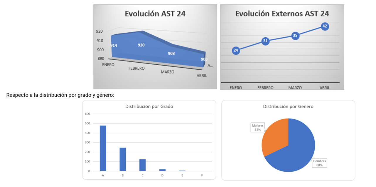 Gráficas de la evolución de nuestra sede en el 2024, recordar que todas ellas están incluidos los compañeros externos.