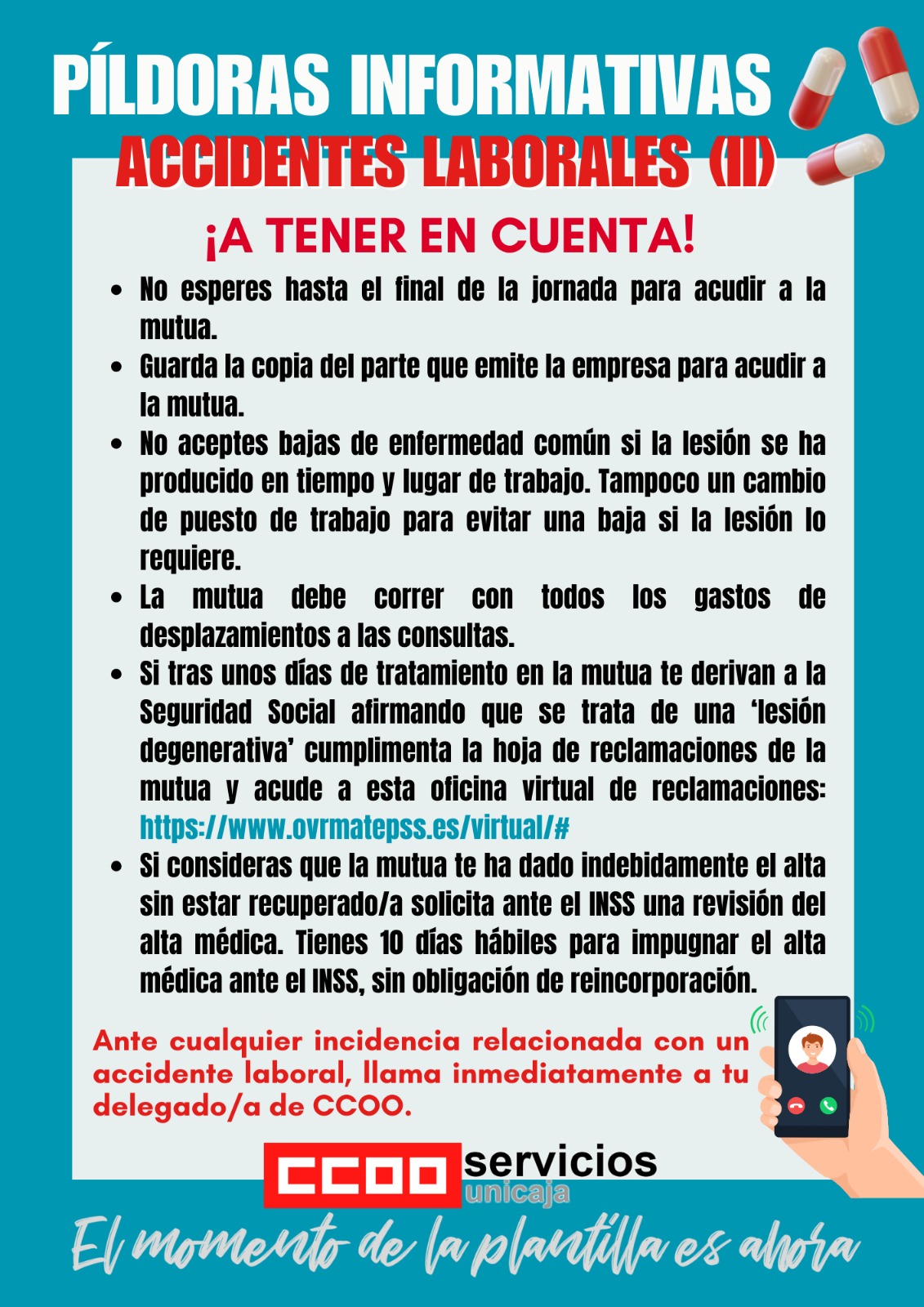Ante cualquier incidencia relacionada con un accidente laboral, llama inmediatamente a u delegada o delegado de CCOO.
